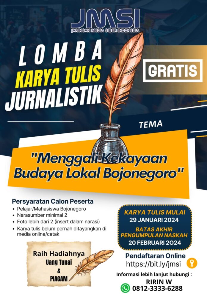 SuaraPemerintah.ID –Â Dalam rangka memperingati Hari Pers Nasional (HPN) 2024, JMSI Bojonegoro menggelar serangkaian acara, termasuk Lomba Karya Tulis Jurnalistik 2024.