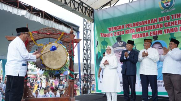 SuaraPemerintah.ID – Guna menanamkan rasa cinta dan gemar baca tulis Al-quran bagi generasi milenial, Musabaqah Tilawatil Qur’an (MTQ) ke-40 tingkat Kabupaten Muara Enim tahun 2024 secara resmi dibuka oleh Penjabat (Pj) Bupati Muara Enim H Ahmad Rizali yang ditandai dengan pemukulan Bedug, Sabtu (24/02) di Lapangan Bola Sepaham Desa Menanti Kecamatan Kelekar.