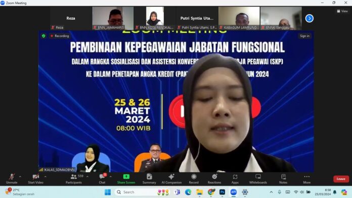 SuaraPemerintah.ID – Biro Sumber Daya Manusia Aparatur dan Organisasi (SDMAO) BNN RI melaksanakan Pembinaan Kepegawaian Jabatan Fungsional Dalam Rangka Sosialisasi dan Asistensi Konversi Sasaran Kinerja Pegawai (SKP) ke dalam Penetapan Angka Kredit (PAK), secara daring pada Senin (25/3).