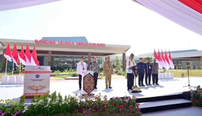SuaraPemerintah.ID – Presiden Joko Widodo (Jokowi) meresmikan Bandara Singkawang di Kota Singkawang, Provinsi Kalimantan Barat, pada Rabu (20/3). Dalam sambutannya, Kepala Negara optimistis keberadaan Bandara Singkawang akan mempercepat mobilitas orang, barang, dan logistik, serta menimbulkan pertumbuhan ekonomi baru di Kota Singkawang.