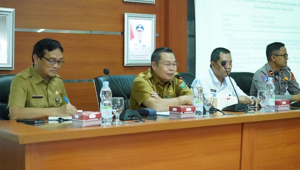 SuaraPemerintah.ID – Guna mematangkan keberangkatan Jemaah Calon Haji (JCH) Kabupaten Muara Enim yang diagendakan keberangkatannya dari Masjid Agung Kota Muara Enim pada bulan Mei mendatang, Pemkab. Muara Enim melalui Bagian Kesejahteraan Rakyat (Kesra) menggelar Rapat Persiapan Pelepasan dan Pemberangkatan JCH Kabupaten Muara Enim Tahun 2024/ 1445 H di Ruang Rapat Serasan Sekundang Kantor Bupati Muara Enim, Selasa (23/04).