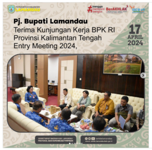 Nanga Bulik (17/04), Bertempat ruang kerja Bupati Lamandau, Pj. Bupati Lamandau, Sekretaris Daerah dan Kepala OPD terkait menerima kunjungan kerja BPK RI Provinsi Kalimantan Tengah. Pada kesempatan ini membahas Entry Meeting yang merupakan bentuk komunikasi awal antara BPK selaku pemeriksa dengan kementerian dan lembaga yang akan diperiksa, yang bertujuan untuk mewujudkan kesamaan persepsi terhadap proses dan pelaksanaan pemeriksaan. Pemeriksaan rinci atas laporan keuangan ini dilaksanakan selama 27( dua puluh ) hari kedepan oleh BPK Provinisi Kalimantan Tengah di Kabupaten Lamandau.