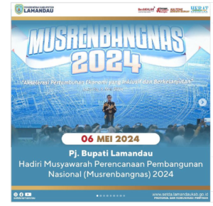Senin (06/05), bertempat di Jakarta Convention Center (JCC), Jakarta, Pj Bupati Lamandau didampingi oleh Sekretaris Daerah Kabupaten Lamandau menghadiri pelaksanaan Musyawarah Perencanaan Pembangunan Nasional (Musrenbangnas) 2024 dalam rangka penyusunan Rencana Kerja Pemerintah (RKP) 2025 yang bertema “Akselerasi Pertumbuhan Ekonomi yang Inklusif dan Berkelanjutan.”