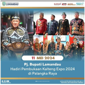 Palangka Raya – Sabtu (11/05), Pj. Bupati Lamandau Dr. Dra. Lilis Suriani, M.M., MM, RS menghadiri Acara Pembukaan Kalteng Expo 2024 yang dilaksanakan di Area Pamerang Temanggung Tilung Kota Palangka Raya yang dilaksanakan dari tanggal 11-15 Mei 2024. Turut hadir Wakil Gubernur Kalteng, anggota Forkopimda Prov. Kalteng, Sekretaris Daerah berserta istri, Ketua DPRD Prov. Kalteng, Pj Bupati dan Pj Wali Kota Se-Kalteng, Danrem 102/Panju Panjung, Kepala Perangkat Daerah, Tokoh Masyarakat, serta masyarakat Kalteng.
