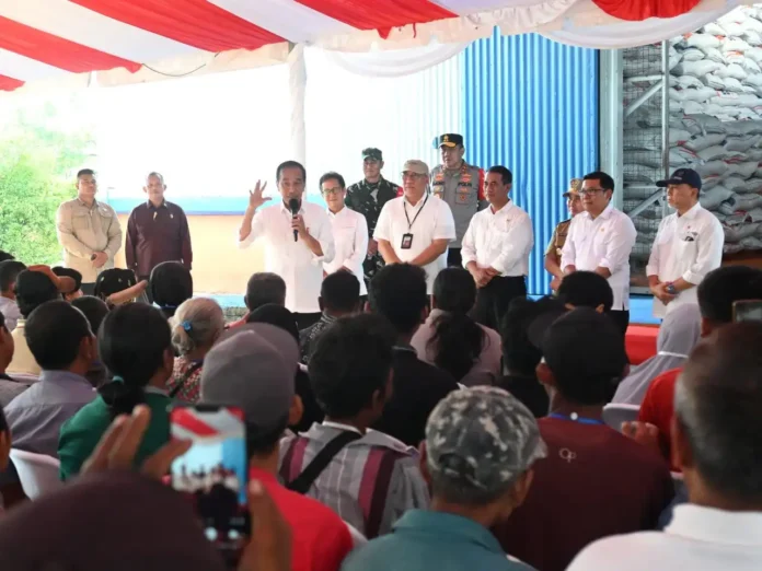 SuaraPemerintah.ID – Presiden Joko Widodo (Jokowi) meninjau stok beras dan menyerahkan bantuan cadangan pangan pemerintah di Komplek Pergudangan Bukit Tunggal, Kota Palangkaraya, Provinsi Kalimantan Tengah pada Rabu, 26 Juni 2024. Dalam sambutannya, Presiden memastikan kontinuitas distribusi beras kepada masyarakat dan memeriksa kualitas stok yang tersedia.