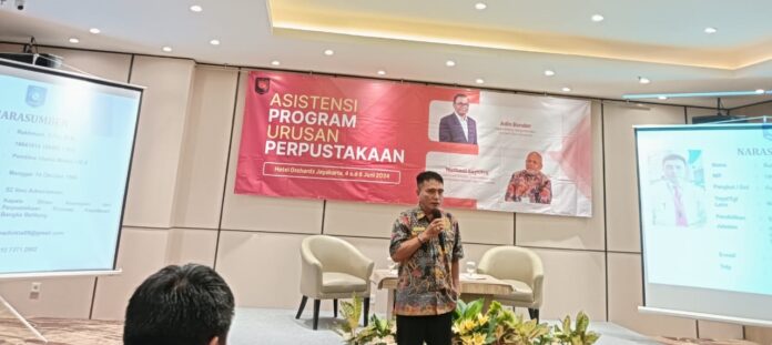 Pemaparan yang dilakukan dalam kegiatan Asistensi Program Urusan Perpustakaan pada Rabu (5/6/2024) petang itu, berlangsung di Hotel Orchardz Jakarta Pusat, dan dihadiri Kepala Pusat Analisa Perpustakaan dan Pengembangan Budaya Baca Perpusnas RI, Nurhadi Saputra, Adin Bondar Deputi Bidang Pengembangan Sumber Daya Perpusnas RI, perwakilan Dinas Perpustakaan Provinsi, Kabupaten/Kota se-Indonesia.