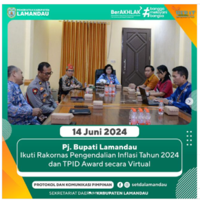SuaraPemerintah.ID – Jum’at (14/06), Pj. Bupati Lamandua didampingi perwakilan Forkopimda dan Kepala OPD mengikuti Rapar Koordinasi Nasional Pengendalian Inflasi Tahun 2024 dan TPID Award bersama Kemendagri melalui zoom meeting di Ruang Rapat Bupati Lamandau. Rakornas ini juga dipimpin langsung oleh Presiden RI Joko Widodo di Istana dan diikuti oleh Gubernur, Bupati/Walikota se-Indonesia.