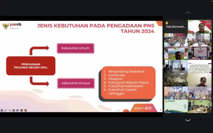 SuaraPemerintah.ID – Kementerian Pendayagunaan Aparatur Negara dan Reformasi Birokrasi (PANRB) telah menerbitkan kebijakan terkait Pengadaan Aparatur Sipil Negara (ASN) tahun 2024. Kebijakan ini dituangkan dalam Peraturan Menteri PANRB No. 6/2024 tentang Pengadaan Pegawai ASN. Menindaklanjuti diterbitkannya aturan ini, Kementerian PANRB menggelar Sosialisasi Kebijakan Pengadaan Pegawai Negeri Sipil (PNS) Tahun Anggaran 2024, secara daring, Senin (29/07).