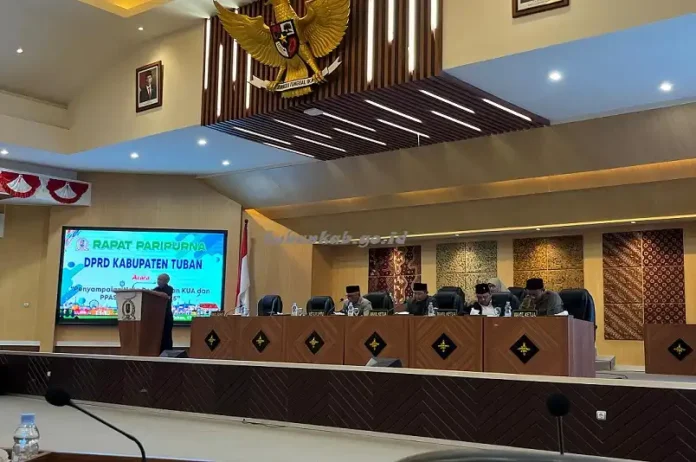 SuaraPemerintah.IDÂ – Pemerintah Kabupaten (Pemkab) Tuban menyampaikan Nota Penjelasan terhadap Rancangan Kebijakan Umum APBD (KUA) dan Rancangan Prioritas dan Plafon Anggaran Sementara (PPAS) tahun anggaran 2025, yang dibacakan oleh Sekda Tuban Budi Wiyana mewakili Bupati Tuban Aditya Halindra Faridzky yang berhalangan hadir, Rabu (17/07) di Ruang Paripurna DPRD setempat.