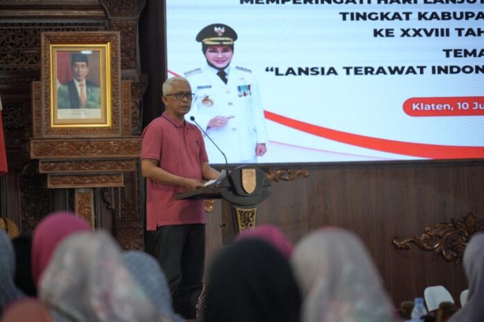 Bupati Klaten, Sri Mulyani yang diwakili Asisten Pemerintahan dan Kesejahteraan Rakyat Setda Klaten, Jaka Purwanto dalam sambutannya menyampaikan Pemkab Klaten terus berkomitmen untuk selalu memajukan dan mendukung warga lansia melalui Komisi Daerah (Komda) Lansia Kabupaten Klaten.