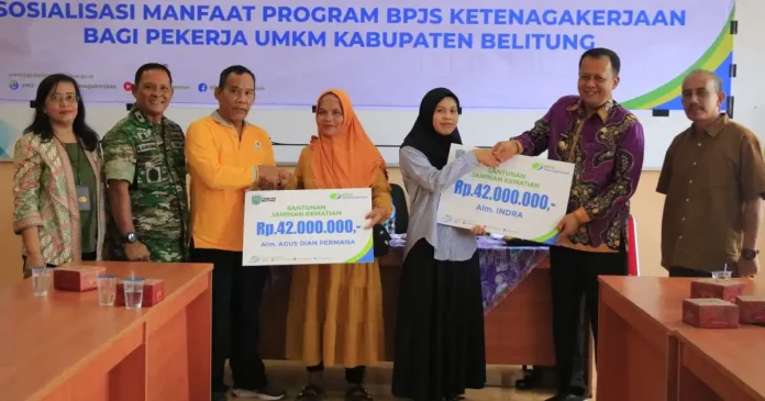 SuaraPemerintah.ID – Pemerintah Kabupaten (Pemkab) Belitung terus mendorong peningkatan jumlah peserta BPJS Ketenagakerjaan di Kabupaten Belitung. Dorongan ini ditujukan bagi para pelaku UMKM dalam bentuk pemberian sosialisasi BPJS Ketengakerjaan.
