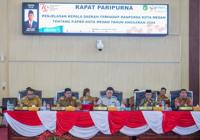 Demikian dibacakan Wali Kota Medan Bobby Nasution saat menyampaikan Penjelasan Wali Kota Medan terhadap Ranperda Kota Medan tentang Rancangan APBD Perubahan Tahun Anggaran 2024 kepada DPRD Medan dalam rapat paripurna, Senin (12/8) di Gedung Dewan.