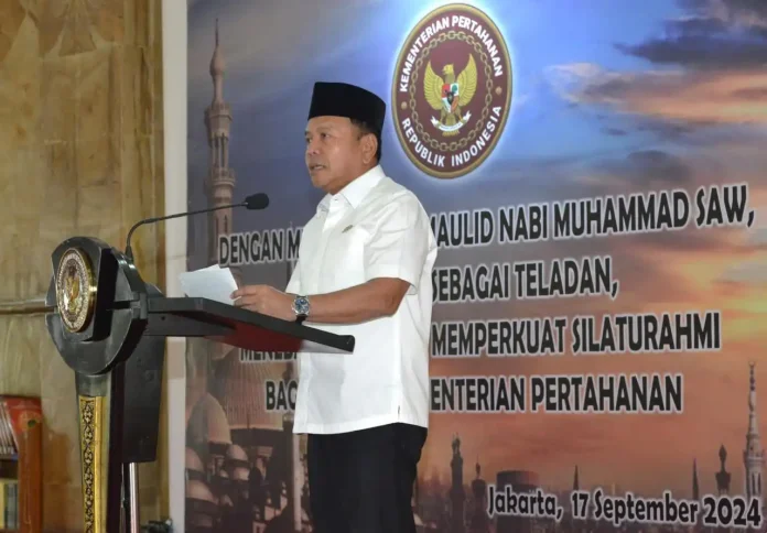 SuaraPemerintah.ID – Kementerian Pertahanan (Kemhan) menyelenggarakan peringatan Maulid Nabi Muhammad SAW Tahun 1446H/2024 M di Masjid At-Taqwa, Kemhan, Selasa (17/9), yang dibuka langsung oleh Wakil Menteri Pertahanan RI M. Herindra.