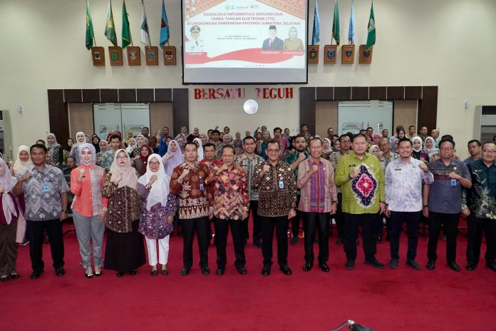 SuaraPemerintah.ID – Sekretaris Daerah (Sekda) Provinsi Sumatera Selatan (Sumsel) Drs H Edward Candra MH, secara resmi membuka Sosialisasi Implementasi aplikasi Srikandi dan Tanda Tangan Elektrik (TTE) di Lingkungan Pemerintah Provinsi Sumsel, bertempat di Auditorium Bina Praja Pemprov Sumsel, Kamis (12/9/2024).