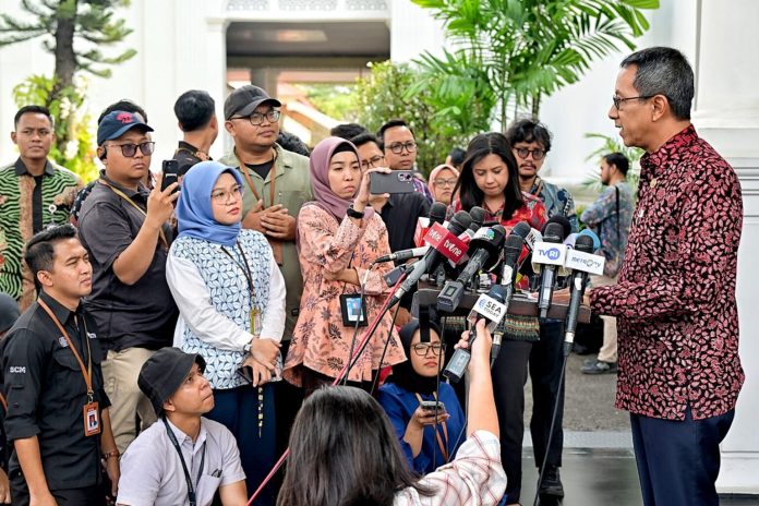 Kepala Sekretariat Presiden (Kasetpres) Heru Budi Hartono menyampaikan kesiapan rangkaian pelantikan serta pengambilan sumpah Presiden dan Wakil Presiden periode 2024-2029 di Kompleks Istana Kepresiden, Jakarta, pada Jumat, 18 Oktober 2024. Persiapan rangkaian kegiatan dimulai dari ketibaan para tamu negara di Pangkalan TNI AU Halim Perdanakusuma, Jakarta dan Bandar Udara Internasional Soekarno-Hatta, Tangerang.