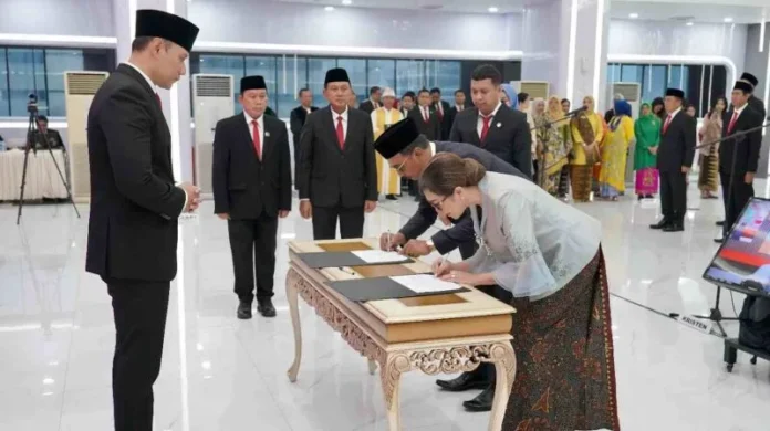 Menteri Agraria dan Tata Ruang/Kepala Badan Pertanahan Nasional (ATR/BPN), Agus Harimurti Yudhoyono (AHY) melantik 67 pejabat di lingkungan Kementerian ATR/BPN yang terdiri dari Pejabat Pimpinan Tinggi Madya dan Pratama serta Pejabat Administrator dan Fungsional. Pelantikan sekaligus Pengambilan Sumpah/Janji Jabatan Pejabat Struktural dan Fungsional ini berlangsung di Aula Prona, Kantor Kementerian ATR/BPN, Jakarta, Senin (14/10/2024).