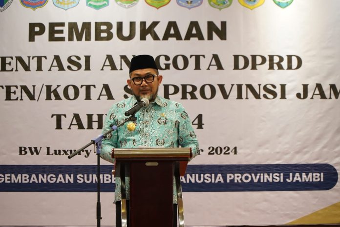 Hal tersebut disampaikannya saat membuka secara resmi Orientasi Anggota DPRD kabupaten/kota se-Provinsi Jambi Tahun 2024, bertempat di Hotel BW Luxury Jambi, Senin (14/10/24) malam.