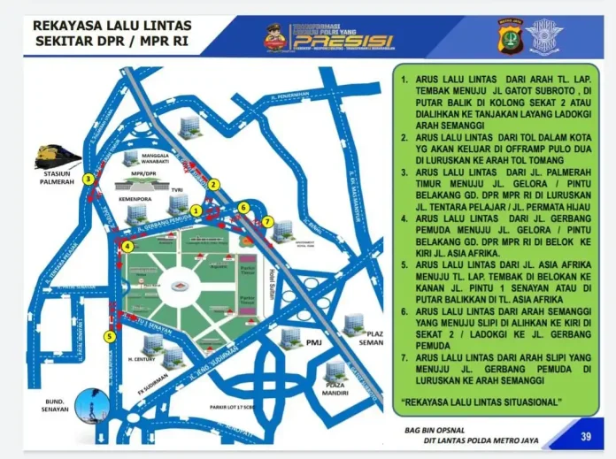 Direktur Lalu Lintas Polda Metro Jaya, Kombes. Pol. M. Latif Usman mengatakan, rekayasa lalu lintas berlaku di setiap rute yang dilintasi rombongan menuju Gedung DPR/MPR dan Istana Merdeka.