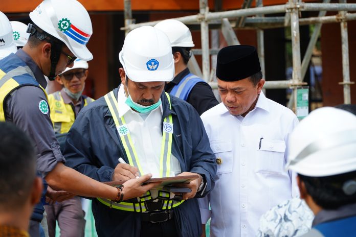 Sebelum mengecek proyek yang bernilai ratusan milliar itu, Menteri Bappenas dan Gubernur Al Haris beserta rombongan terlebih dahulu menggunakan safety untuk menghindari kejadian yang tidak diinginkan.