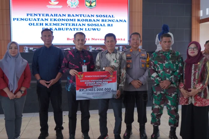 Sekretaris Direktorat Jenderal Perlindungan dan Jaminan Sosial Kementerian Sosial Republik Indonesia, Beni Sujanto, A.Ks, M.Si menyambangi Kabupaten Luwu untuk menyerahkan secara langsung bantuan sosial Penguatan Ekonomi korban bencana banjir yang terjadi di Kabupaten Luwu pada bulan Mei 2024 lalu senilai Rp1,4 Miliar Rupiah.