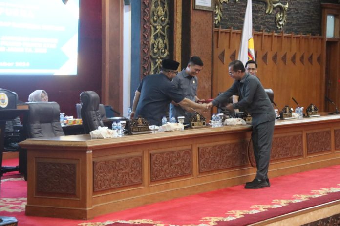 Selain itu Pjs Gubernur Sudirman juga menyampaikan Tanggapan atau Jawaban Gubernur terhadap pemandangan umum Fraksi-fraksi atas nota pengantar Ranperda APBD Provinsi Jambi TA.2025, bertempat di Ruang Rapat Paripurna DPRD Provinsi Jambi, Rabu (20/11/24).