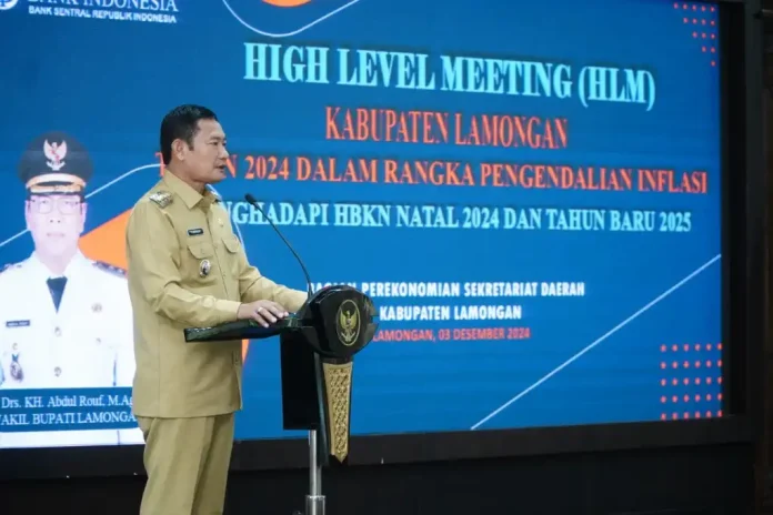 Pemerintah Kabupaten Lamongan gelar high level meeting (HLM) untuk kendalikan inflasi jelang perayaan Hari Raya Natal 2024 dan Tahun Baru 2025, Selasa (3/12) di Pendopo Lokatantra pagi ini.