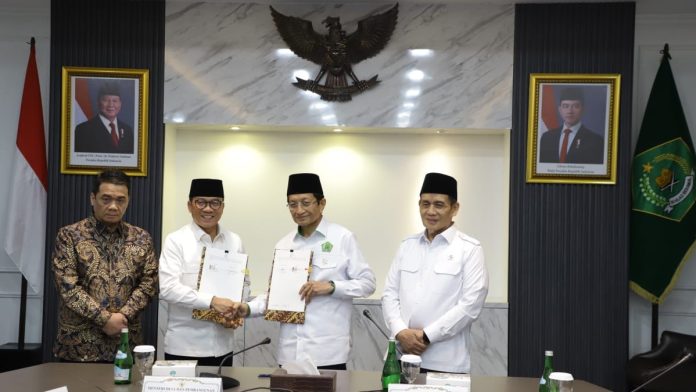 Hal ini tertuang dalam Kesepakatan Bersama antara dua Kementerian tersebut terkait dengan sinergi tugas dan fungsi dalam pemberdayaan masyarakat desa. Kesepakatan ini ditandatangani oleh Menteri Agama Nasaruddin Umar dan Menteri Desa Yandri Susanto di Kantor Kementerian Agama, Jakarta, Senin (9/12/2024). Turut hadir, Wakil Menteri Agama Romo Syafi’i dan Wakil Menteri Desa A. Riza Patria.