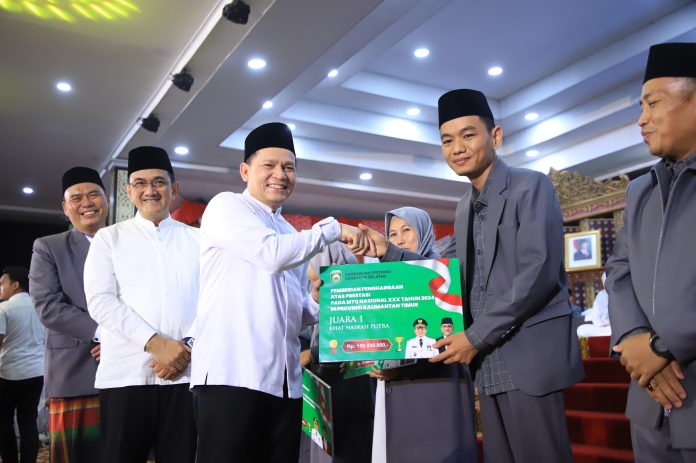 Adapun bonus yang diserahkan Pj Gubernur Elen Setiadi masing-masing diberikan kepada Juara 1 Qiro’at Murottal Dewasa uang pembinaan sebesar Rp. 150 juta, Juara 1 Khat Naskah Putra Rp. 150 juta, Juara 1 Fahmil Quran Putri Rp. 225 juta.