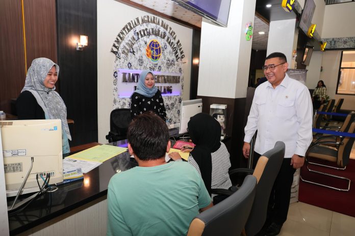 Wamen ATR/BPN, Ossy Dermawan meninjau pelaksanaan Pelayanan Tanah Akhir Pekan (PELATARAN) yang berlangsung di Kantor Pertanahan (Kantah) Kota Malang, pada Minggu (19/01/25).