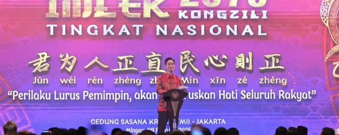 Mewakili Presiden Prabowo Subianto, Wakil Presiden (Wapres) Gibran Rakabuming hari ini, Minggu sore (09/02/2025), hadir pada acara Perayaan Tahun Baru Imlek Nasional 2576 Kongzili yang di gelar oleh Majelis Tinggi Agama Khonghucu Indonesia (MATAKIN), di gedung Sasana Kriya, Taman Mini Indonesia Indah, Jakarta Timur.