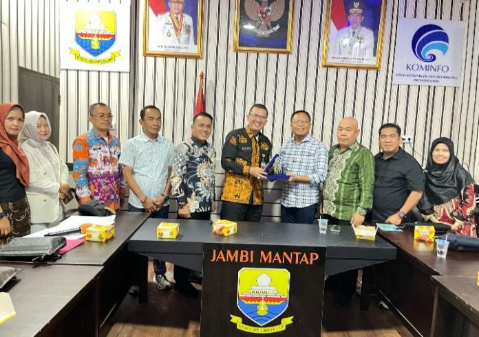Kadis Kominfo Provinsi Jambi, Ariansyah menyambut kedatangan Ketua DPRD Provinsi Bengkulu, Sumardi bersama Ketua Komisi 1, Zainal dan para anggota Komisi 1 DPRD Bengkulu bertempat di ruang pola kantor Dinas Kominfo Provinsi Jambi.