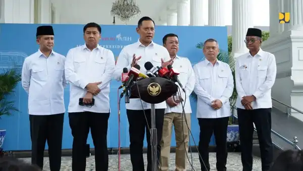 Menteri Pekerjaan Umum Dody Hanggodo menghadiri rapat terbatas (ratas) bersama Presiden Prabowo Subianto di Istana Negara, Jakarta, Selasa (18/2/2024). Ratas turut dihadiri Menteri Koordinator Bidang Infrastruktur dan Pembangunan Kewilayahan Agus Harimurti Yudhoyono (Menko AHY) beserta para Menteri teknis di bawah koordinator Kemenko Bidang Infrastruktur dan Pembangunan Kewilayahan seperti Menteri Agraria dan Tata Ruang Nusron Wahid, Menteri Perumahan dan Kawasan Permukiman Maruarar Sirait, dan Menteri Transmigrasi M Iftitah Sulaiman Suryanagara.