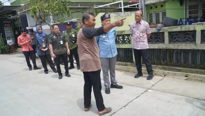 Penjabat (Pj) Bupati Jepara, Edy Supriyanta, meninjau Jalan Patiunus, Kelurahan Jobokuto, Kecamatan Jepara, Selasa (4/2/2025). Kunjungan dilakukan, setelah menerima aduan warga terkait dampak pembangunan jalan beton yang menyebabkan banjir.