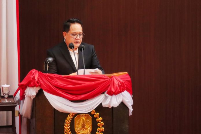Penjabat (Pj) Gubernur Jawa Timur, Adhy Karyono, menyampaikan dua nota penjelasan terkait perubahan nomenklatur dua Badan Usaha Milik Daerah (BUMD) Jatim menjadi Perusahaan Perseroan Daerah (Perseroda) pada sidang Paripurna bersama DPRD Jatim di Gedung DPRD Jatim Jl. Indrapura Surabaya, Senin (3/2/2025).