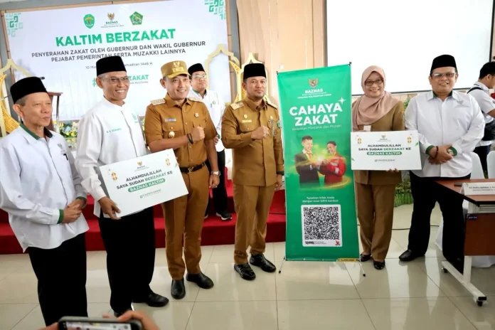 Gubernur Kaltim Rudy Mas’ud bersama Wakil Gubernur Seno Aji menunaikan kewajiban Zakat di bulan Ramadan ini melalui Badan Amil Zakat Nasional (Baznas) Prov Kaltim. Keduanya hadir pada acara Kaltim Berzakat di Gedung Olah Bebaya Kantor Gubernur Kaltim, Senin (10/3/25).
