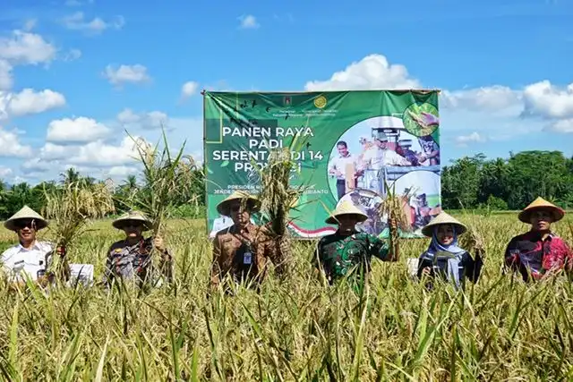 Kepala Dinas Pertanian dan Pangan Kabupaten Magelang, Romza Ernawan menjelaskan gerakan panen padi di Kabupaten Magelang bersama 14 provinsi secara serentak digagas oleh Presiden Prabowo Subianto melalui program pembelian gabah para petani dengan harga Rp6.500/kg.