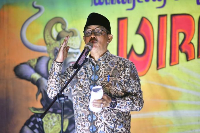 Paparan disampaikan Wabup Syaefudin ketika memberikan sambutan dihadapan warga Desa Bulak Lor Kecamatan Jatibarang ketika berlangsung kegiatan syukuran Mapag Sri, Rabu malam (9/4/2025).