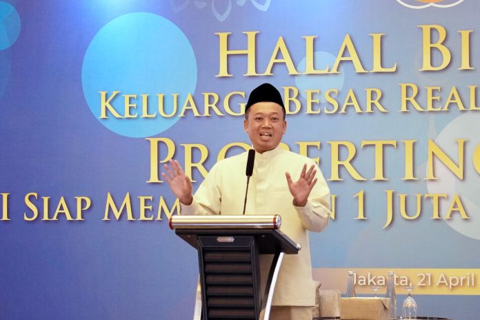 Menteri ATR/BPN, Nusron Wahid, hadir dalam acara Halalbihalal Keluarga Besar Realestat Indonesia (REI) yang berlangsung pada Senin (21/04/25) di Sheraton Grand, Jakarta.