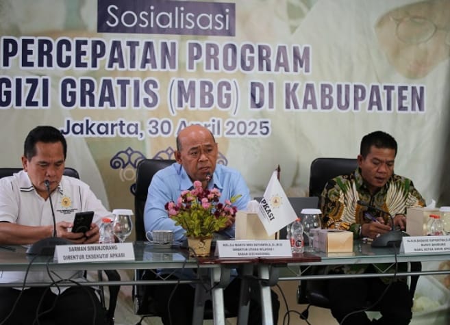 Asosiasi Pemerintah Kabupaten Seluruh Indonesia (Apkasi) bersama Badan Gizi Nasional (BGN) menggelar sosialisasi daring bertajuk “Percepatan Program Makan Bergizi Gratis (MBG) di Kabupaten”, Rabu (30/4/2025). Acara yang dipusatkan di Kantor Apkasi Jakarta ini menjadi langkah strategis untuk memastikan implementasi program prioritas Presiden Prabowo Subianto berjalan optimal di tingkat daerah.