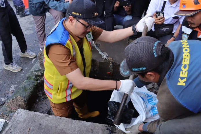 Wakil Wali Kota Cimahi, Adhitia Yudisthira, bersama jajaran Dinas Pekerjaan Umum dan Penataan Ruang (DPUPR), Dinas Perumahan dan Kawasan Permukiman (DPKP), serta Organisasi Perangkat Daerah (OPD) terkait, melakukan peninjauan langsung ke titik-titik genangan air di sepanjang Jalan Nasional Amir Machmud, kawasan Cibabat, Kota Cimahi, Senin (19/05).