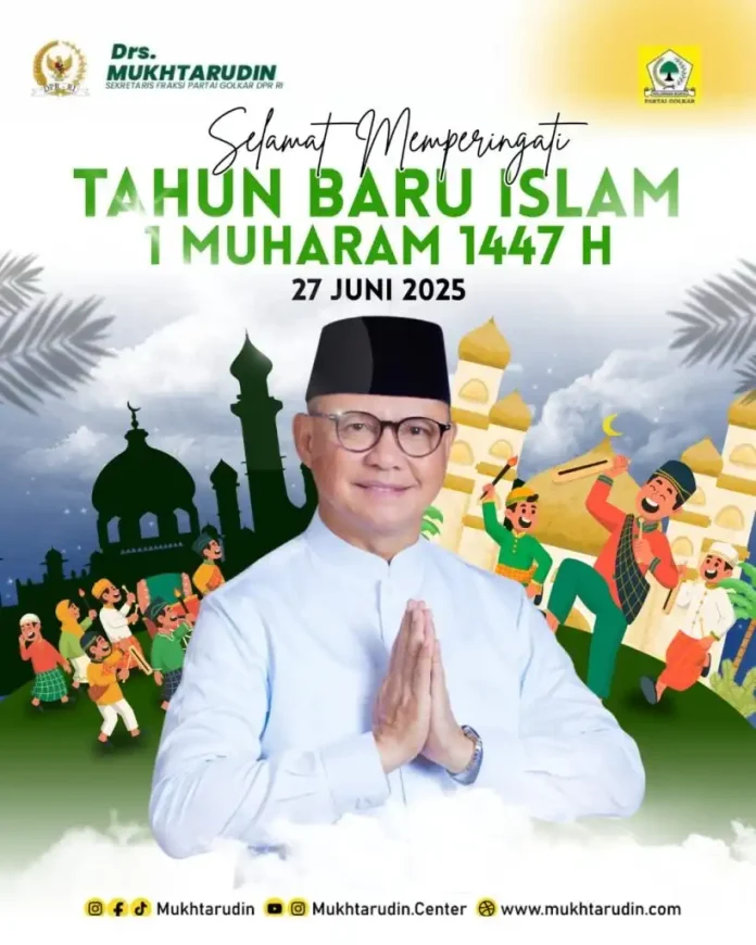 Sekretaris Fraksi Golkar DPR RI Mukhtarudin mengucapkan selamat Tahun Baru Islam 1 Muharram 1447 Hijriah 27 Juni 2025 kepada seluruh umat Islam di Indonesia.