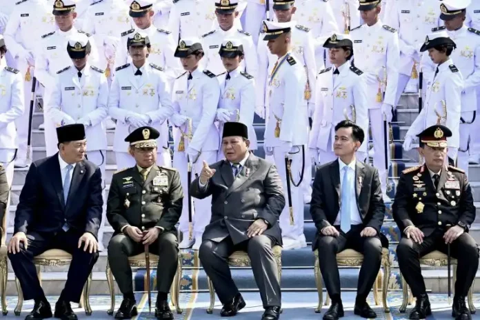 Menteri Pertahanan (Menhan) Sjafrie Sjamsoeddin menghadiri Upacara Prasetya Perwira (Praspa) Tentara Nasional Indonesia (TNI) dan Kepolisian Negara Republik Indonesia (Polri) Tahun 2025 yang dipimpin langsung oleh Presiden RI Prabowo Subianto di halaman Istana Merdeka, Jakarta, Rabu (23/7/2025).