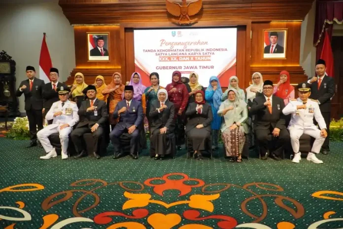 Gubernur Jawa Timur Khofifah Indar Parawansa memimpin penganugerahan Tanda Kehormatan Satya Lencana Karya Satya (SLKS) Republik Indonesia Tahun 2025 bagi Aparatur Sipil Negara (ASN) di lingkungan Organisasi Perangkat Daerah (OPD) Pemprov Jatim. Kegiatan ini berlangsung di Gedung Negara Grahadi, Rabu (13/8).