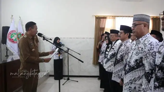 Wali Kota Malang, Wahyu Hidayat mengukuhkan kepengurusan Persatuan Guru Republik Indonesia (PGRI) Kota Malang masa bakti 2025–2030 di Gedung Guru PGRI Kota Malang, Senin (4/8). Pada kesempatan ini juga dilaksanakan serah terima jabatan dari Ketua PGRI Kota Malang masa jabatan 2023-2025, Anton Henawanto kepada Agus Wahyudi yang kini menjabat Ketua PGRI Kota Malang yang baru.