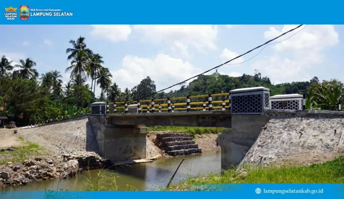 Jembatan baru dengan panjang sekitar 15 meter dan lebar 3 meter ini dikerjakan Dinas PUPR Lampung Selatan melalui Bidang Bina Marga.