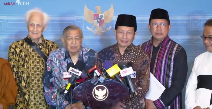 Menag Nasaruddin Umar mendampingi Presiden Prabowo Subianto dalam pertemuan dengan Gerakan Nurani Bangsa (GNB) di Istana Negara, Kamis (11/9/2025).