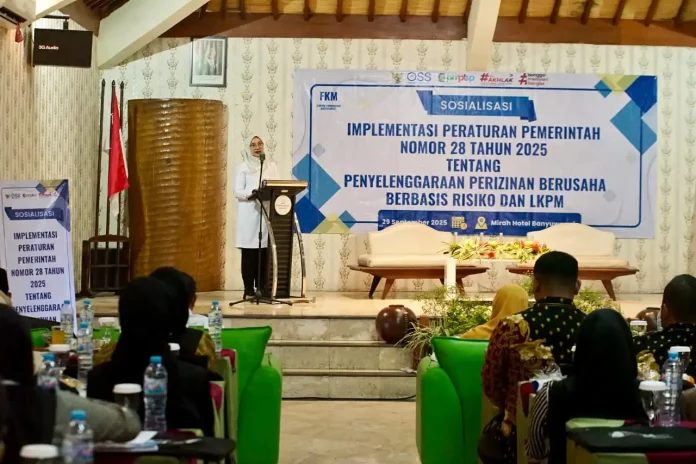 Pemkab Banyuwangi menggelar sosialisasi Peraturan Pemerintah (PP) Nomor 28 Tahun 2025 tentang Penyelenggaraan Perizinan Berusaha Berbasis Risiko, Senin (29/9). PP ini secara spesifik mengatur tentang