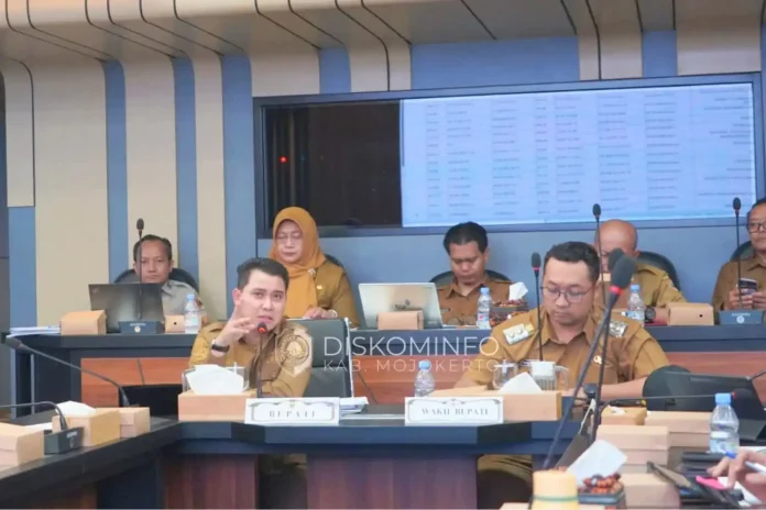 Agenda rapat ini difokuskan pada evaluasi pelaksanaan program dan kegiatan Tahun Anggaran 2025, mencakup realisasi anggaran, pendapatan daerah, pengadaan barang/jasa, serta capaian kinerja prioritas. Rapat turut dihadiri Wakil Bupati Mojokerto, Sekretaris Daerah, para Staf Ahli Bupati, Asisten Sekretaris Daerah, seluruh Kepala Organisasi Perangkat Daerah (OPD), camat, serta jajaran teknis.