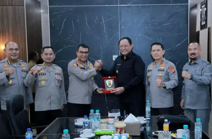 Gubernur Gorontalo Gusnar Ismail secara estafet tanpa mengenal lelah memaksimalkan kunjungan kerjanya di Provinsi Nusa Tenggara Barat (NTB), untuk memperoleh masukan terkait kolaborasi dalam pengelolaan pertambangan. Pada hari keduanya di Bumi Seribu Masjid, Selasa (14/10), Gubernur Gusnar Ismail bersama Kapolda Gorontalo dan Ketua Deprov, mendatangi Markas Polda NTB yang diterima langsung oleh Kapolda NTB Irjen Pol. Hadi Gunawan didampingi Irwas, Direskrimsus, dan jajarannya.