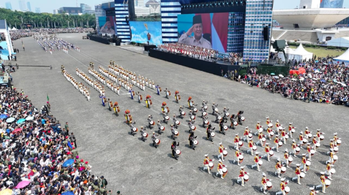 Rangkaian acara kemudian dilanjutkan dengan defile alutsista TNI, menampilkan 1.047 peralatan pertahanan modern mulai dari kendaraan taktis, artileri medan dan udara, drone, hingga kapal selam tanpa awak. Atraksi udara pesawat F-16 menjadi penutup yang spektakuler, menggetarkan langit Monas dan menegaskan kesiapan TNI menjaga kedaulatan Indonesia.